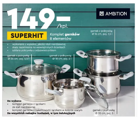 Ile kosztuje Komplet garnk贸w ze stali nierdzewnej Ambition?