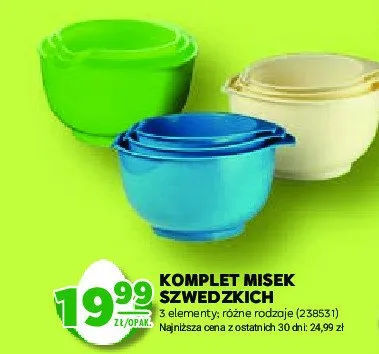 Cena produktu r贸偶ni si臋 w zale偶no艣ci od wybranego sklepu. Niestety nie posiadamy danych o aktualnych promocjach, jednak w艣r贸d archiwalnych ofert Komplet misek szwedzkich kosztuje od 19,99 z艂.