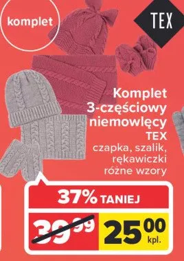 Przegl膮daj podobne oferty promocyjne do Komplet niemowl臋cy: czapka + szalik + r臋kawiczki Tex!