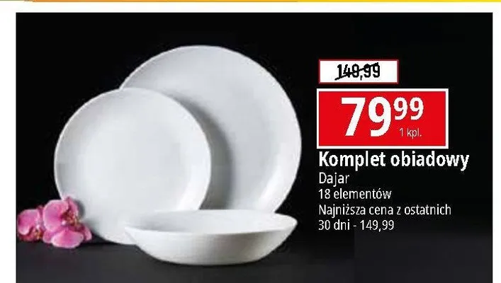 Zastanawiasz si臋, gdzie kupi膰 i ile kosztuje produkt Komplet obiadowy 18 element贸w Dajar? Regularnie sprawdzamy, czy jest promocja na ten produkt w Biedronka, Lidl, Kaufland, Auchan, Netto, Makro i innych sklepach. Aktualnie posiadamy 1 ofert臋 promocyjn膮 na ten produkt. Ceny zaczynaj膮 si臋 od 119,00z艂!