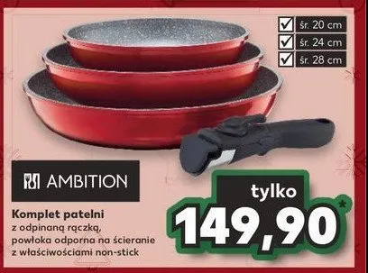 Ile kosztuje Komplet patelni z odpinan膮 r膮czk膮 20 cm + 24 cm + 28 cm Ambition?