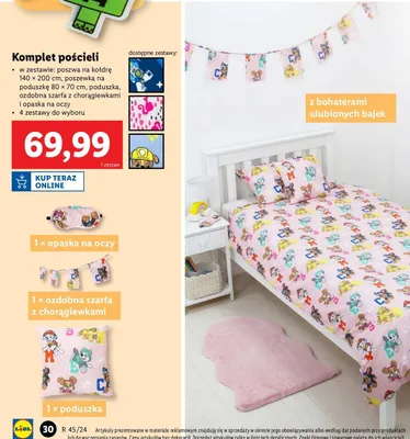 Ile kosztuje Komplet po艣cieli 140 x 200 cm + 80 x 70 cm + poduszka + szarfa +opaska na oczy psi patrol?