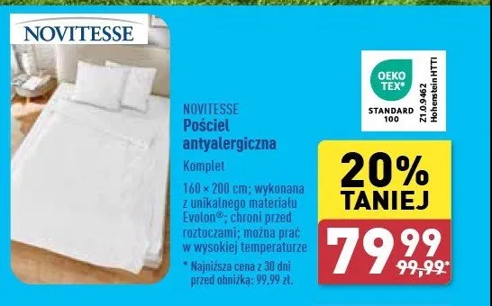 Ile kosztuje Komplet po艣cieli antyalergicznej 160 x 200 cm + 2 x 70 x 80 cm Novitesse?