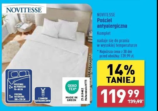 Ile kosztuje Komplet po艣cieli antyalergicznej 220 x 200 cm + 2 x 70 x 80 cm Novitesse?
