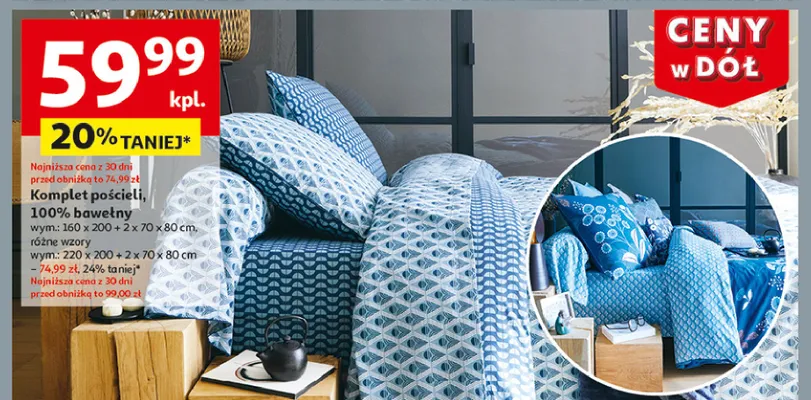 Zastanawiasz si臋, gdzie kupi膰 i ile kosztuje produkt Komplet po艣cieli bawe艂nianej 160 x 200 + 2 x 70 x 80 cm? Regularnie sprawdzamy, czy jest promocja na ten produkt w Biedronka, Lidl, Kaufland, Auchan, Netto, Makro i innych sklepach. Aktualnie posiadamy 1 ofert臋 promocyjn膮 na ten produkt. Ceny zaczynaj膮 si臋 od 129,00z艂!