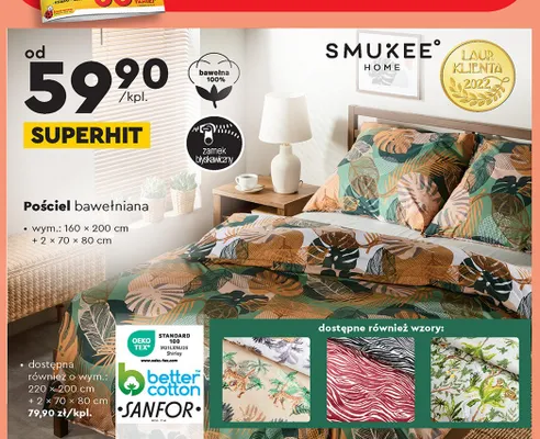 Przegl膮daj oferty promocyjne na produkt Komplet po艣cieli bawe艂nianej 160 x 200 cm + 2 x 70 x 80 cm Smukee home