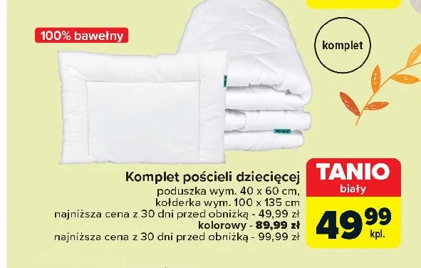 Komplet po艣cieli dzieci臋cy 100 x 135 + 40 x 60 cm Wendre aktualnie nie wyst臋puje w bazie naszych gazetek promocyjnych. Nie martw si臋! Gdy tylko pojawi si臋 ciekawa promocja na Komplet po艣cieli dzieci臋cy 100 x 135 + 40 x 60 cm Wendre, umie艣cimy j膮 na naszej stronie