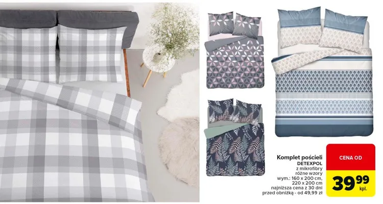 Zastanawiasz si臋, gdzie kupi膰 i ile kosztuje produkt Komplet po艣cieli mikrofibra wym. 160 x 200 cm + 2 x 70 x 80 cm Detexpol? Regularnie sprawdzamy, czy jest promocja na ten produkt w Biedronka, Lidl, Kaufland, Auchan, Netto, Makro i innych sklepach. Aktualnie posiadamy 1 ofert臋 promocyjn膮 na ten produkt. Ceny zaczynaj膮 si臋 od 26,99z艂!