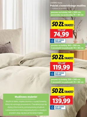 Gdzie mo偶na tanio kupi膰 produkt Komplet po艣cieli z bawe艂nianego mu艣linu 220 x 200 cm + 2 x 70 + 80 cm LIVARNO HOME?