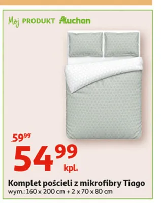 Gdzie mo偶na tanio kupi膰 produkt Komplet poscieli z mikrofibry 160 x 200 cm + 2 x 70 x 80 cm Auchan na co dzie艅 (logo zielone)?