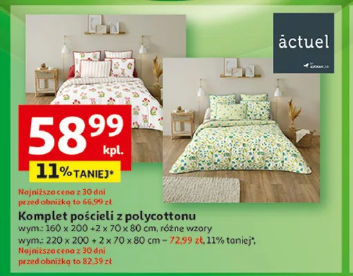 Ile kosztuje Komplet po艣cieli z polycottonu 220 x 200 cm + 2 x 70 x 80 cm Actuel?