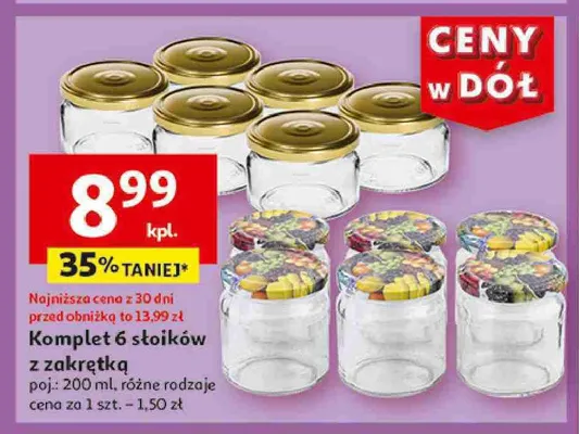 Cena produktu r贸偶ni si臋 w zale偶no艣ci od wybranego sklepu. Niestety nie posiadamy danych o aktualnych promocjach, jednak w艣r贸d archiwalnych ofert Komplet s艂oik贸w z zakr臋tkami 200 ml kosztuje od 8,99 z艂.