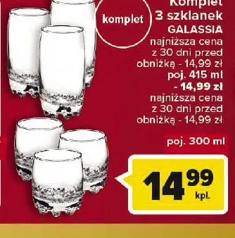 Cena produktu r贸偶ni si臋 w zale偶no艣ci od wybranego sklepu. Niestety nie posiadamy danych o aktualnych promocjach, jednak w艣r贸d archiwalnych ofert Komplet szklanek galassia 415 ml kosztuje od 11,99 z艂 do 15,99 z艂.