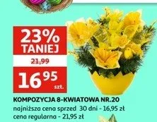 Cena produktu r贸偶ni si臋 w zale偶no艣ci od wybranego sklepu. Niestety nie posiadamy danych o aktualnych promocjach, jednak w艣r贸d archiwalnych ofert Kompozycja 8 kwiatowa kosztuje od 21,49 z艂 do 29,99 z艂.