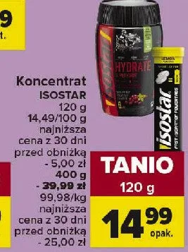 Cena produktu r贸偶ni si臋 w zale偶no艣ci od wybranego sklepu. Niestety nie posiadamy danych o aktualnych promocjach, jednak w艣r贸d archiwalnych ofert Koncentrat cytryna Isostar kosztuje od 14,99 z艂.