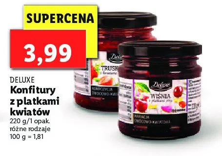 Zastanawiasz si臋, gdzie kupi膰 i ile kosztuje produkt Konfitura truskawka z kwiatami czarnego bzu Deluxe? Regularnie sprawdzamy, czy jest promocja na ten produkt w Biedronka, Lidl, Kaufland, Auchan, Netto, Makro i innych sklepach. Aktualnie nie posiadamy ofert promocyjnych na ten produkt.