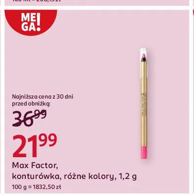 Cena produktu r贸偶ni si臋 w zale偶no艣ci od wybranego sklepu. Niestety nie posiadamy danych o aktualnych promocjach, jednak w艣r贸d archiwalnych ofert Kontur贸wka do ust universal Max factor colour elixir kosztuje od 21,99 z艂.
