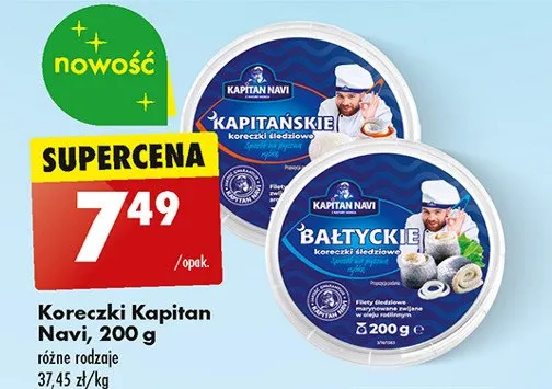 Cena produktu r贸偶ni si臋 w zale偶no艣ci od wybranego sklepu. Niestety nie posiadamy danych o aktualnych promocjach, jednak w艣r贸d archiwalnych ofert Koreczki kapita艅skie Kapitan navi kosztuje od 7,49 z艂.