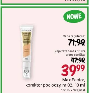 Cena produktu r贸偶ni si臋 w zale偶no艣ci od wybranego sklepu. Niestety nie posiadamy danych o aktualnych promocjach, jednak w艣r贸d archiwalnych ofert Korektor do twarzy 020 MAX FACTOR FACEFINITY ALL DAY FLAWLESS 3W1 kosztuje od 39,99 z艂.