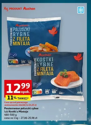 Przegl膮daj podobne oferty promocyjne do Kostki rybne z fileta mintaja Auchan r贸偶norodne (logo czerwone)!