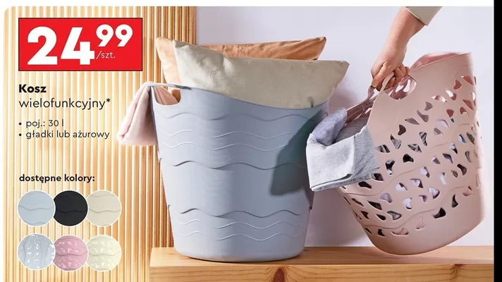 Cena produktu r贸偶ni si臋 w zale偶no艣ci od wybranego sklepu. Produkt Kosz wielofunkcyjny g艂adki 30 l mo偶esz kupi膰 w promocji ju偶 od 24,99 z艂. Najta艅sza oferta, jak膮 mamy w naszej bazie jest z sieci Biedronka. Kosz wielofunkcyjny g艂adki 30 l kosztuje aktualnie 24,99 z艂. Zobacz ofert臋