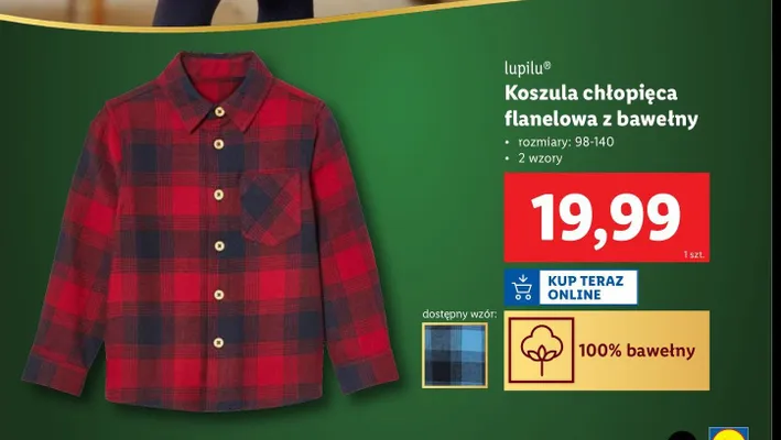 Przeglądaj podobne oferty promocyjne do Koszula chłopięca flanela z bawełną 98-140 Lupilu!