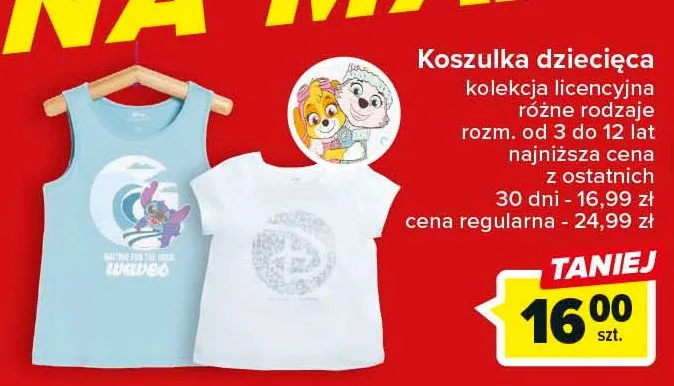 Zastanawiasz si臋, gdzie kupi膰 i ile kosztuje produkt Koszulka lilo i stich 3-12 lat? Regularnie sprawdzamy, czy jest promocja na ten produkt w Biedronka, Lidl, Kaufland, Auchan, Netto, Makro i innych sklepach. Aktualnie nie posiadamy ofert promocyjnych na ten produkt.
