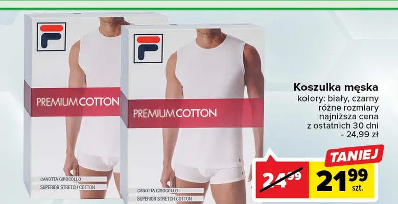 Cena produktu r贸偶ni si臋 w zale偶no艣ci od wybranego sklepu. Niestety nie posiadamy danych o aktualnych promocjach, jednak w艣r贸d archiwalnych ofert Koszulka m臋ska bia艂a kosztuje od 21,99 z艂.