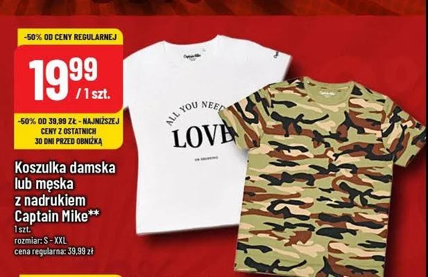 Cena produktu r贸偶ni si臋 w zale偶no艣ci od wybranego sklepu. Niestety nie posiadamy danych o aktualnych promocjach, jednak w艣r贸d archiwalnych ofert Koszulka m臋ska s-xxl Captain mike kosztuje od 19,99 z艂.