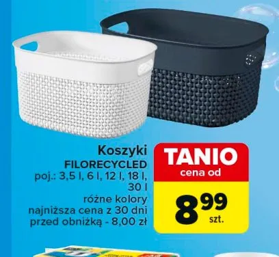 Cena produktu r贸偶ni si臋 w zale偶no艣ci od wybranego sklepu. Niestety nie posiadamy danych o aktualnych promocjach, jednak w艣r贸d archiwalnych ofert Koszyk filorecycled 12 l kosztuje od 8,99 z艂.