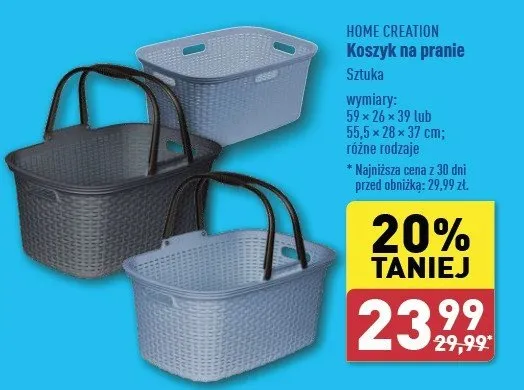 Koszyk na pranie 59 x 26 x 39 cm Home creation aktualnie nie wyst臋puje w bazie naszych gazetek promocyjnych. Nie martw si臋! Gdy tylko pojawi si臋 ciekawa promocja na Koszyk na pranie 59 x 26 x 39 cm Home creation, umie艣cimy j膮 na naszej stronie