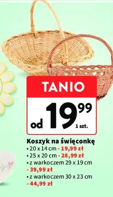 Cena produktu r贸偶ni si臋 w zale偶no艣ci od wybranego sklepu. Niestety nie posiadamy danych o aktualnych promocjach, jednak w艣r贸d archiwalnych ofert Koszyk na 艣wi臋conk臋 30 x 23 cm kosztuje od 44,99 z艂.