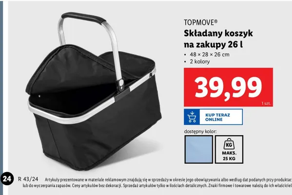 Gdzie mo偶na tanio kupi膰 produkt Koszyk na zakupy 26 l Topmove?