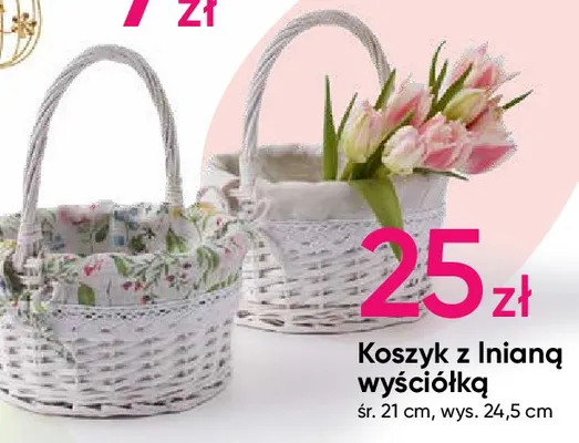 Cena produktu różni się w zależności od wybranego sklepu. Niestety nie posiadamy danych o aktualnych promocjach, jednak wśród archiwalnych ofert Koszyk z lnianą wyściółką kosztuje od 25 zł.