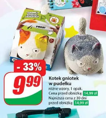 Cena produktu r贸偶ni si臋 w zale偶no艣ci od wybranego sklepu. Niestety nie posiadamy danych o aktualnych promocjach, jednak w艣r贸d archiwalnych ofert Kotek gniotek kosztuje od 9,99 z艂.