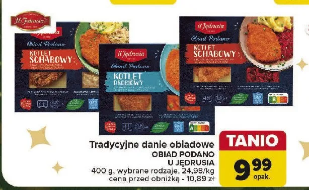 Gdzie można tanio kupić produkt Kotlet schabowy z kapustą zasmażaną i puree ziemniaczanym U jędrusia?