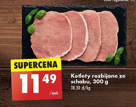 Cena produktu r贸偶ni si臋 w zale偶no艣ci od wybranego sklepu. Niestety nie posiadamy danych o aktualnych promocjach, jednak w艣r贸d archiwalnych ofert Kotlety rozbijane ze schabu kosztuje od 11,49 z艂 do 11,99 z艂.