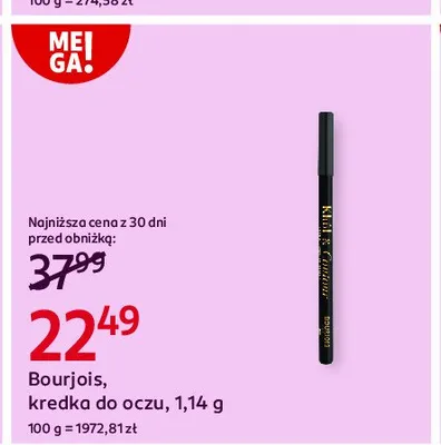 Cena produktu r贸偶ni si臋 w zale偶no艣ci od wybranego sklepu. Niestety nie posiadamy danych o aktualnych promocjach, jednak w艣r贸d archiwalnych ofert Kredka do oczu Bourjois kosztuje od 22,49 z艂 do 26,99 z艂.
