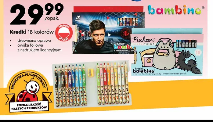 Przeglądaj podobne oferty promocyjne do Kredki ołówkowe z temperówką 18 kolorów Bambino st.majewski!