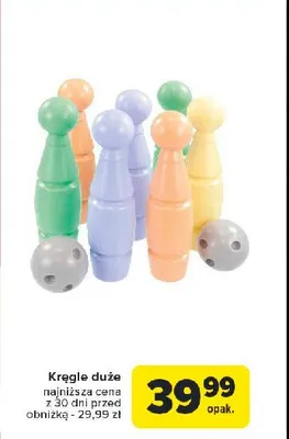 Cena produktu różni się w zależności od wybranego sklepu. Niestety nie posiadamy danych o aktualnych promocjach, jednak wśród archiwalnych ofert Kręgle duże kosztuje od 39,99 zł.