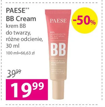 Cena produktu r贸偶ni si臋 w zale偶no艣ci od wybranego sklepu. Niestety nie posiadamy danych o aktualnych promocjach, jednak w艣r贸d archiwalnych ofert Krem bb koloryzuj膮cy 01n Paese kosztuje od 19,99 z艂.