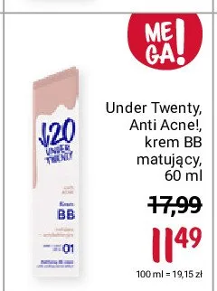 Ile kosztuje Krem bb matuj膮co-antybakteryjny 01 jasny Under twenty anti acne?