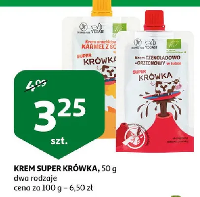 Cena produktu r贸偶ni si臋 w zale偶no艣ci od wybranego sklepu. Niestety nie posiadamy danych o aktualnych promocjach, jednak w艣r贸d archiwalnych ofert Krem czekoladowo-orzechowy Super kr贸wka kosztuje od 2,99 z艂.