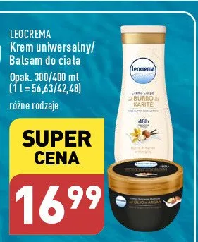 Cena produktu r贸偶ni si臋 w zale偶no艣ci od wybranego sklepu. Niestety nie posiadamy danych o aktualnych promocjach, jednak w艣r贸d archiwalnych ofert Krem do cia艂a burro di karite Leocrema kosztuje od 16,99 z艂.