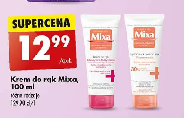 Przeglądaj podobne oferty promocyjne do Krem do rąk regeneracja sucha i zniszczona skóra dłoni 30% Mixa intensywna pielęgnacja suchej skóry!