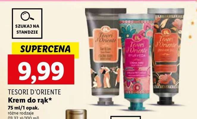 Cena produktu r贸偶ni si臋 w zale偶no艣ci od wybranego sklepu. Niestety nie posiadamy danych o aktualnych promocjach, jednak w艣r贸d archiwalnych ofert Krem do r膮k Tesori d'oriente ayurveda kosztuje od 9,99 z艂.
