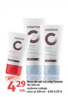 Cena produktu r贸偶ni si臋 w zale偶no艣ci od wybranego sklepu. Niestety nie posiadamy danych o aktualnych promocjach, jednak w艣r贸d archiwalnych ofert Krem do r膮k z naturalnym olejkiem arganowym Cosmia kosztuje od 4,29 z艂.
