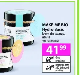 Cena produktu r贸偶ni si臋 w zale偶no艣ci od wybranego sklepu. Niestety nie posiadamy danych o aktualnych promocjach, jednak w艣r贸d archiwalnych ofert Krem do sk贸ry t艂ustej i mieszanej Make me bio kosztuje od 41,99 z艂.
