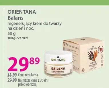 Cena produktu r贸偶ni si臋 w zale偶no艣ci od wybranego sklepu. Niestety nie posiadamy danych o aktualnych promocjach, jednak w艣r贸d archiwalnych ofert Krem do twarzy drzewo sanda艂owe i kurkuma Orientana kosztuje od 19,99 z艂 do 35,99 z艂.