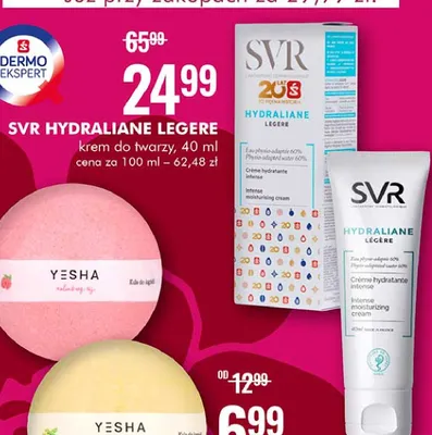 Cena produktu r贸偶ni si臋 w zale偶no艣ci od wybranego sklepu. Niestety nie posiadamy danych o aktualnych promocjach, jednak w艣r贸d archiwalnych ofert Krem do twarzy legere Svr hydraliane kosztuje od 24,99 z艂 do 45,99 z艂.